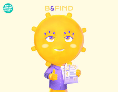 B&Find Une mascotte d’accueil pour une agence d’intérim connectée : un trio de personnages amusants qui incarnent le service et guident le public tout au long de son parcours.